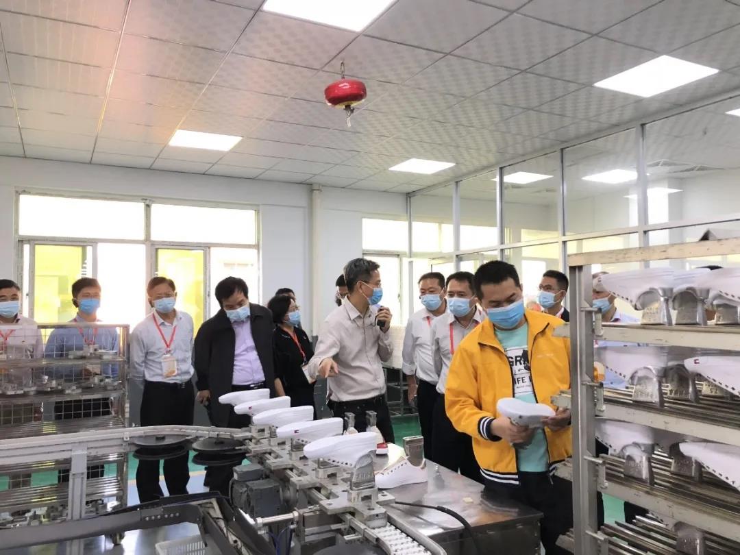 兩批次,近百人,華寶科技全員熱心接待。公司主要負責(zé)人帶領(lǐng)專題班學(xué)員深入制鞋智能應(yīng)用車間現(xiàn)場,實地了解制鞋智能產(chǎn)線。