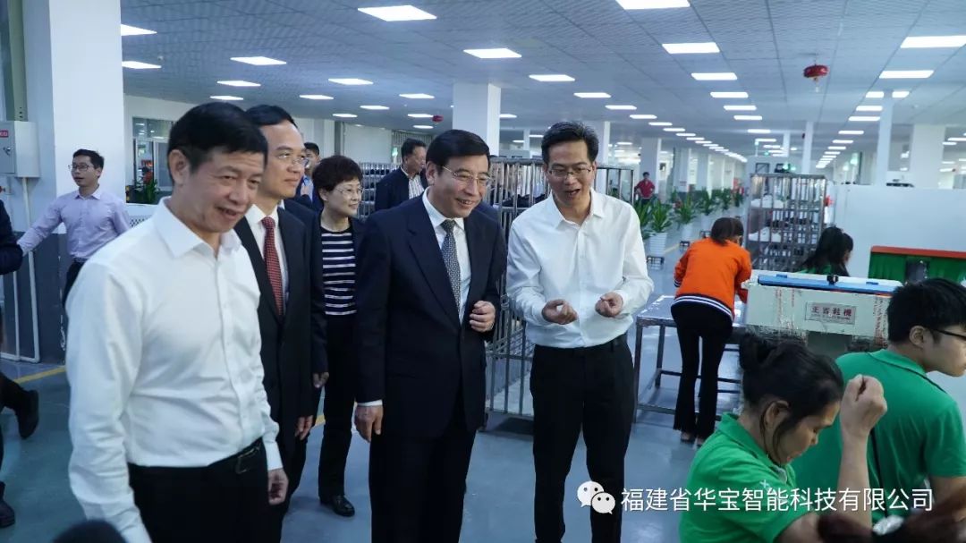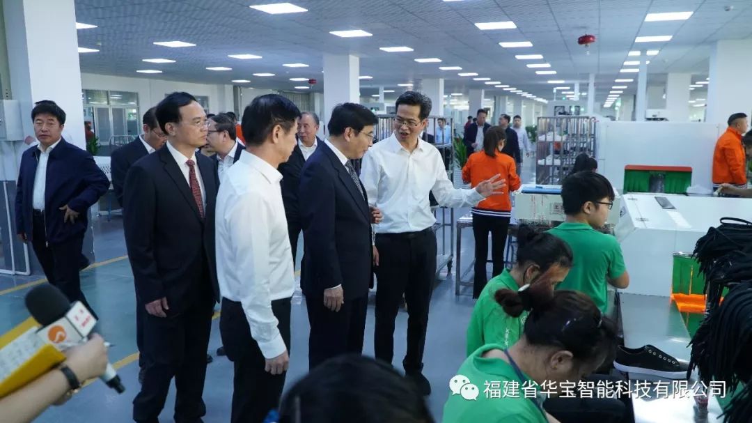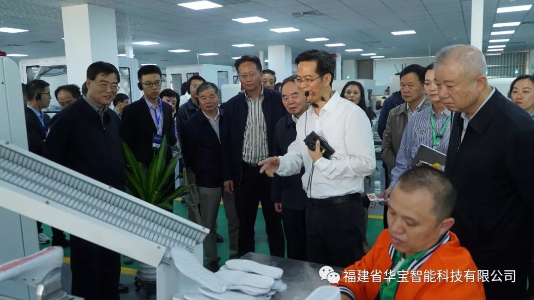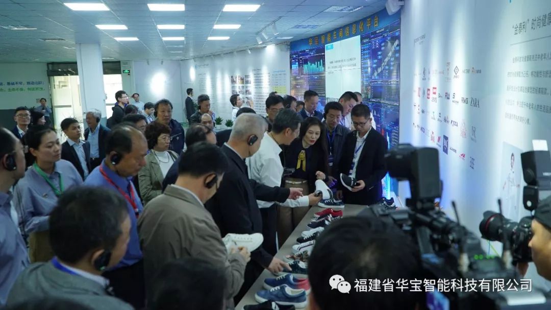 同日,工業和信息化部部長苗圩、 國家制造強國建設戰略咨詢委主任周濟、 福建省人民政府副省長林寶金,全國各地工業和信息化主管部門代表,智能制造試點示范企業、相關制造業企業、智能制造解決方案商、工業互聯網企業等代表,中國工程院等有關科研機構、高校專家等百余人來到 華寶智能科技有限公司晉江基地的制鞋智能產線項目應用現場 。